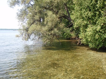 Always at the summer retreat there is the gift of a few days when the lake is still and gentle, and at peace with itself. On these days, I put writing aside and alternate between taking the sea kayak out deeper into the lake, crossing the bays as the crow flies, or should I say the Canada Geese, and taking out my smaller kayak, a crossover boat that does shorelines well, lets me hug the edges, revel in the delights that only shoreline can offer. On this retreat, with two out of seven days suitable for paddling, I have taken out both boats, first the sea kayak, and now the crossover. There is no easy put-in point from the retreat property. I have to pull the boat down from a meter or so height of rickety old dock, through the odd spider web, and a canopy of lovely tree branches that spill over the water.